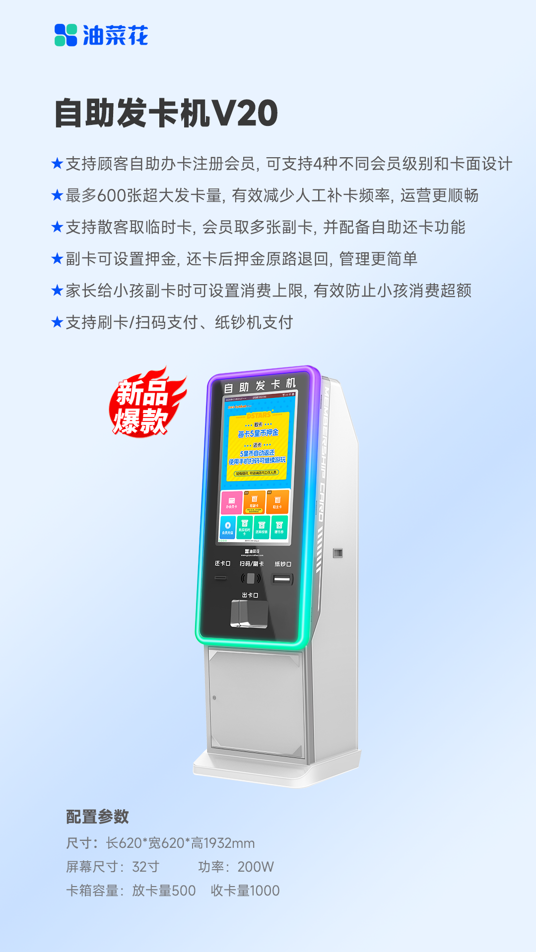 1、支持顾客自助办卡注册会员,可支持4种不同会员级别和卡面设计